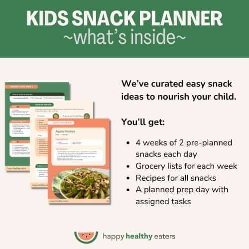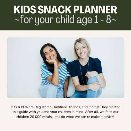 The planned snacks contain a wide variety of foods, including most of the top allergens. We haven’t specifically outlined alternative options for food allergies. But if you feel well-versed in making substitutions, you’d likely be able to adapt for your child’s food allergy. Can I send these snacks to daycare/school?